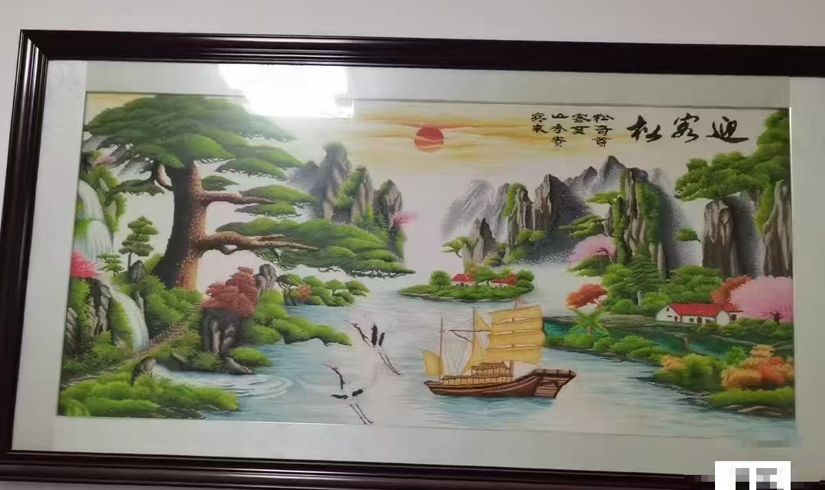 出售带框十字绣,尺寸长2米,宽1米多,麻布手工两年制作完成,挂在客厅非常好看,有需要的联系我,平谷区,峪口镇
